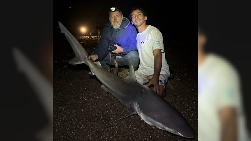 Daniel y Kenneth Hughes, padre e hijo, son oriundos de Trelew y disfrutan habitualmente de pescar juntos por distintos puertos de Chubut. Ambos comparten la pasión de la pesca deportiva de tiburones y eso los llevó a concretar muchas salidas hasta conseguir cada uno su ejemplar ideal. Su sueño se cumplió este jueves por la madrugada en Puerto Lobos, cuando Kenneth picó con su caña un tiburón bacota de dos metros.