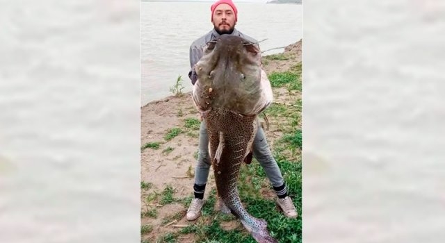 Ariel Albil, quien posa en la foto comentó a MediosIntegrales: “fue a caña y desde la orilla. Para sacarlo tuvimos que subir y acompañarlo en lancha, luché y trabajé, una hora y media. Para que se canse y poder sacarlo”, resaltó el afortunado pescador.